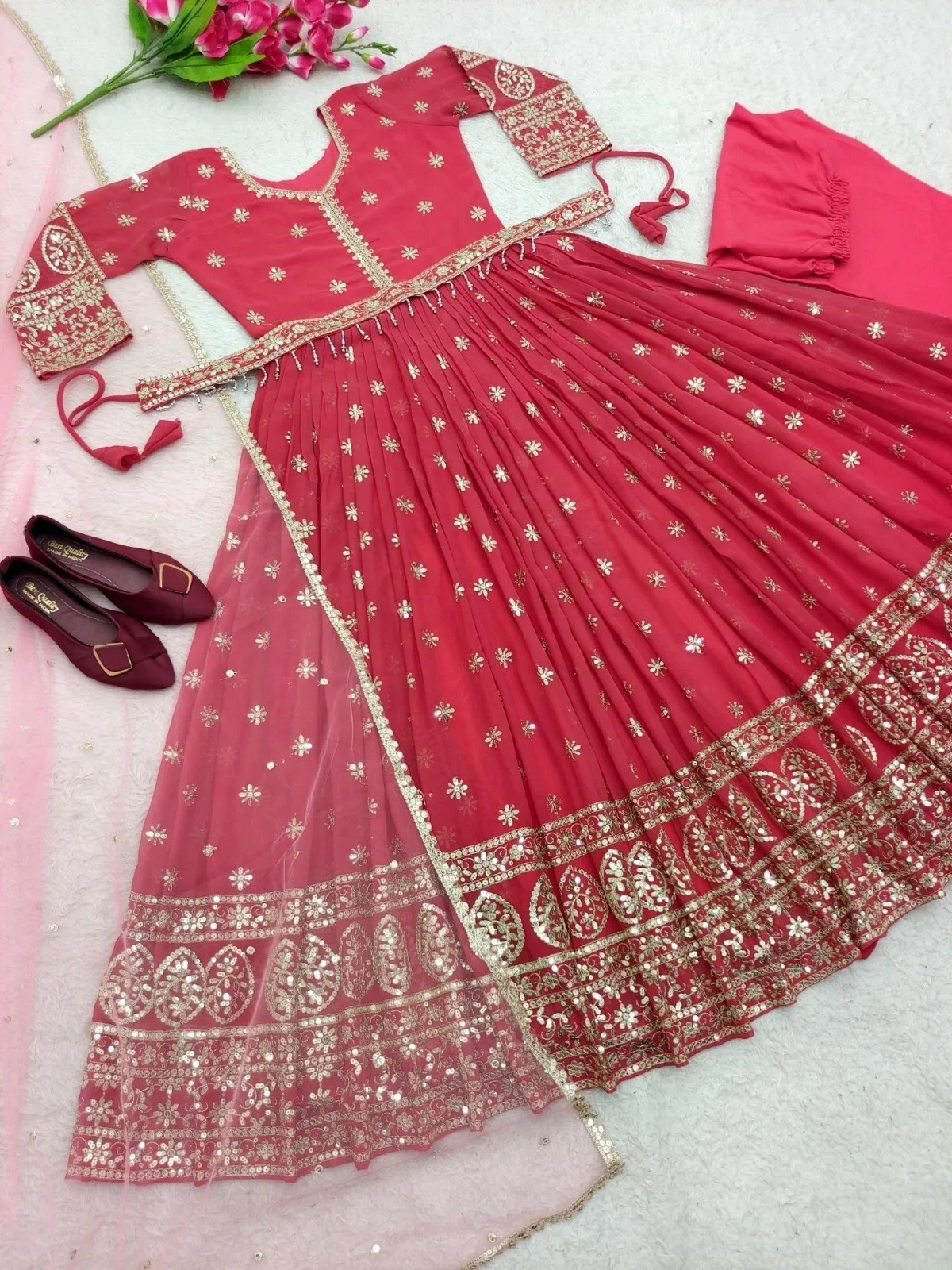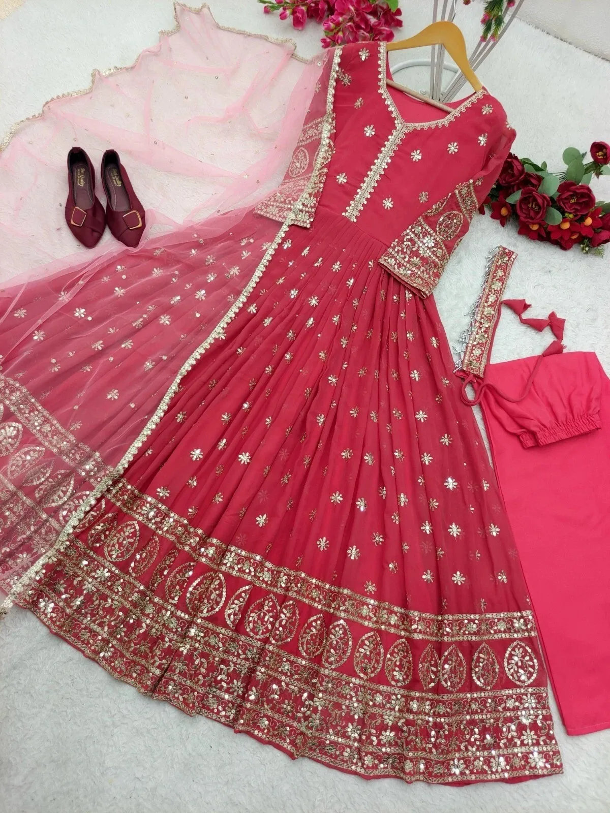 👉👗Gwon Fabric : Heavy Fox Georgette With Hevvy 5mm Siqwans Emrodery Work With Sleeve