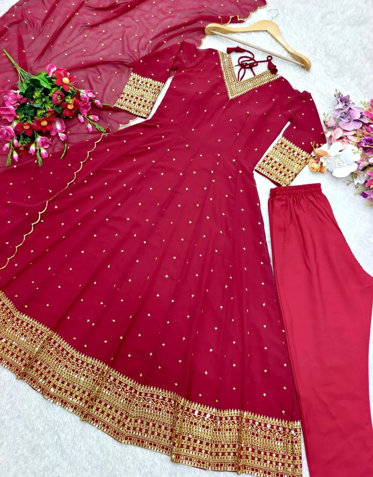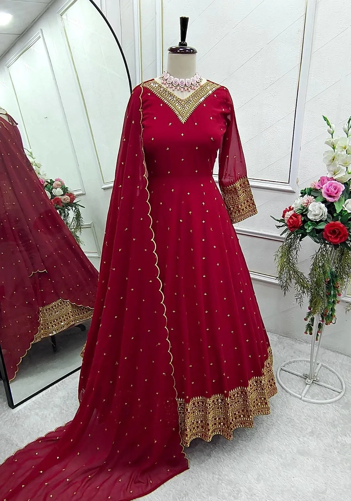 Gwon Fabric : Pure Fox Georgette With Heavy Embroidery 5mm Sequence Work With Sleeve With (Attached Ped)