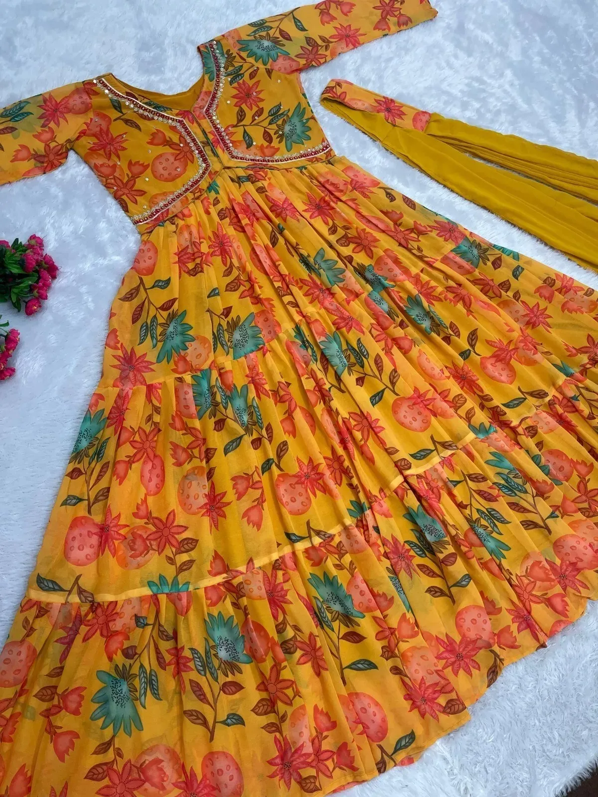 #GOWN WORK : EMBROIDERED SEQUENCE WORK WITH RUFFLE