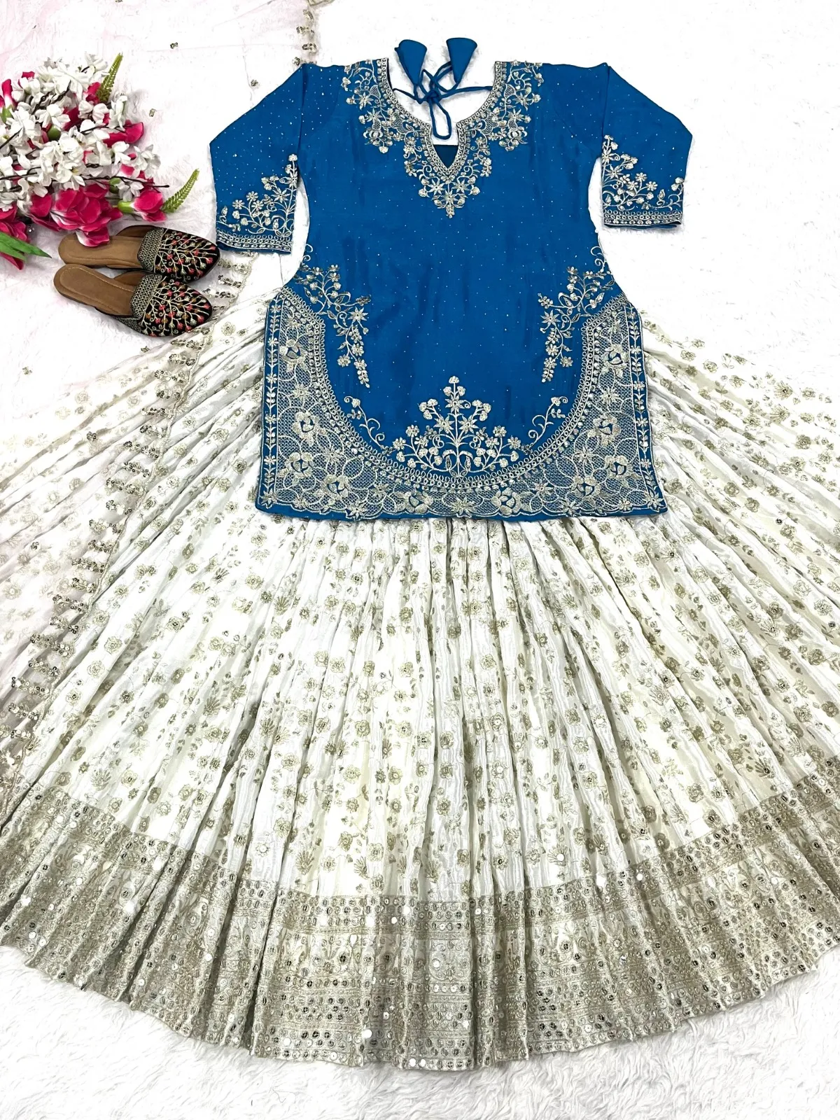 💃Top  Fabric: Heavy chinon silk  and 5mm Sequence Embroidery Work