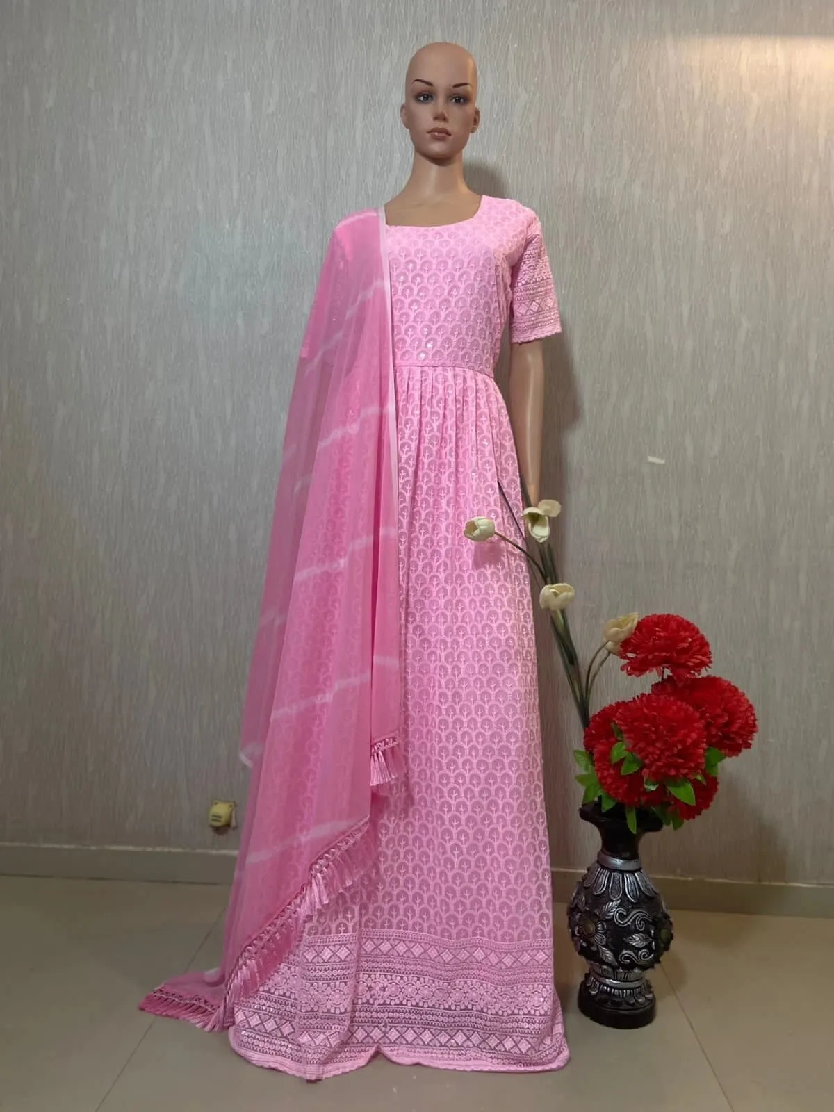 Presenting You Most Beautiful Lucknawi Chickankari Work Floor Length Gown