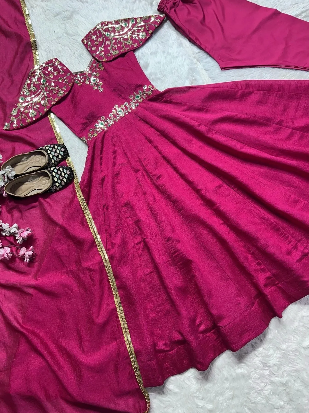 đź‘—ANARKALI FABRIC: SIMMAR VICHITRA SILK FABRICS EMBROIDERY SEQUENCE WORK